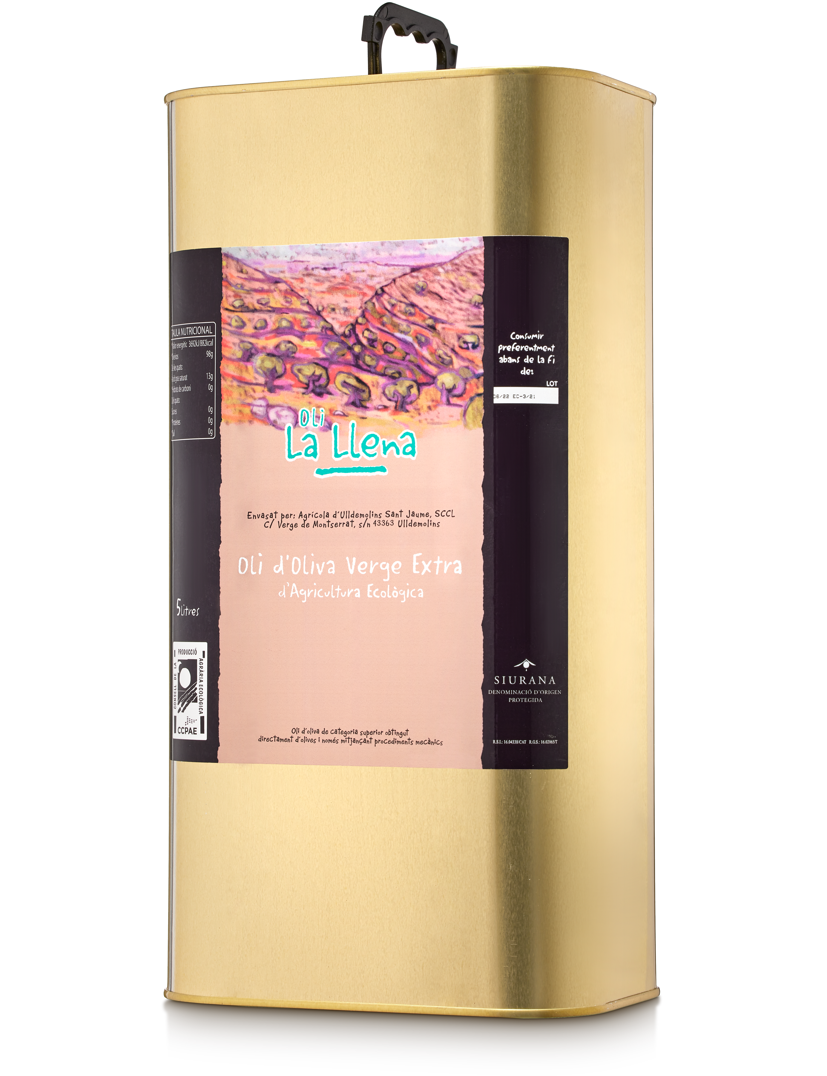 Oli La Llena. Oli d’Oliva Verge Extra Ecològic. Llauna 5L. Collita 2025/2026